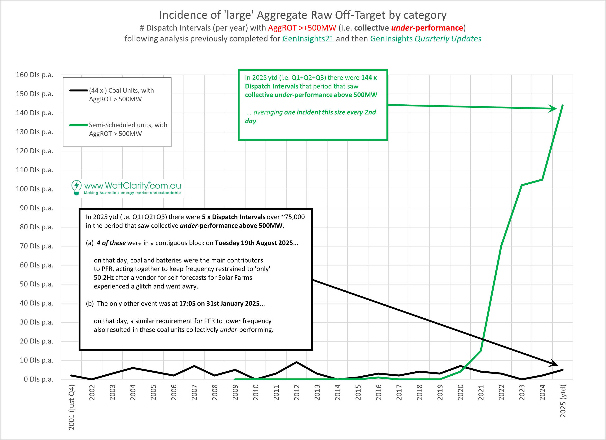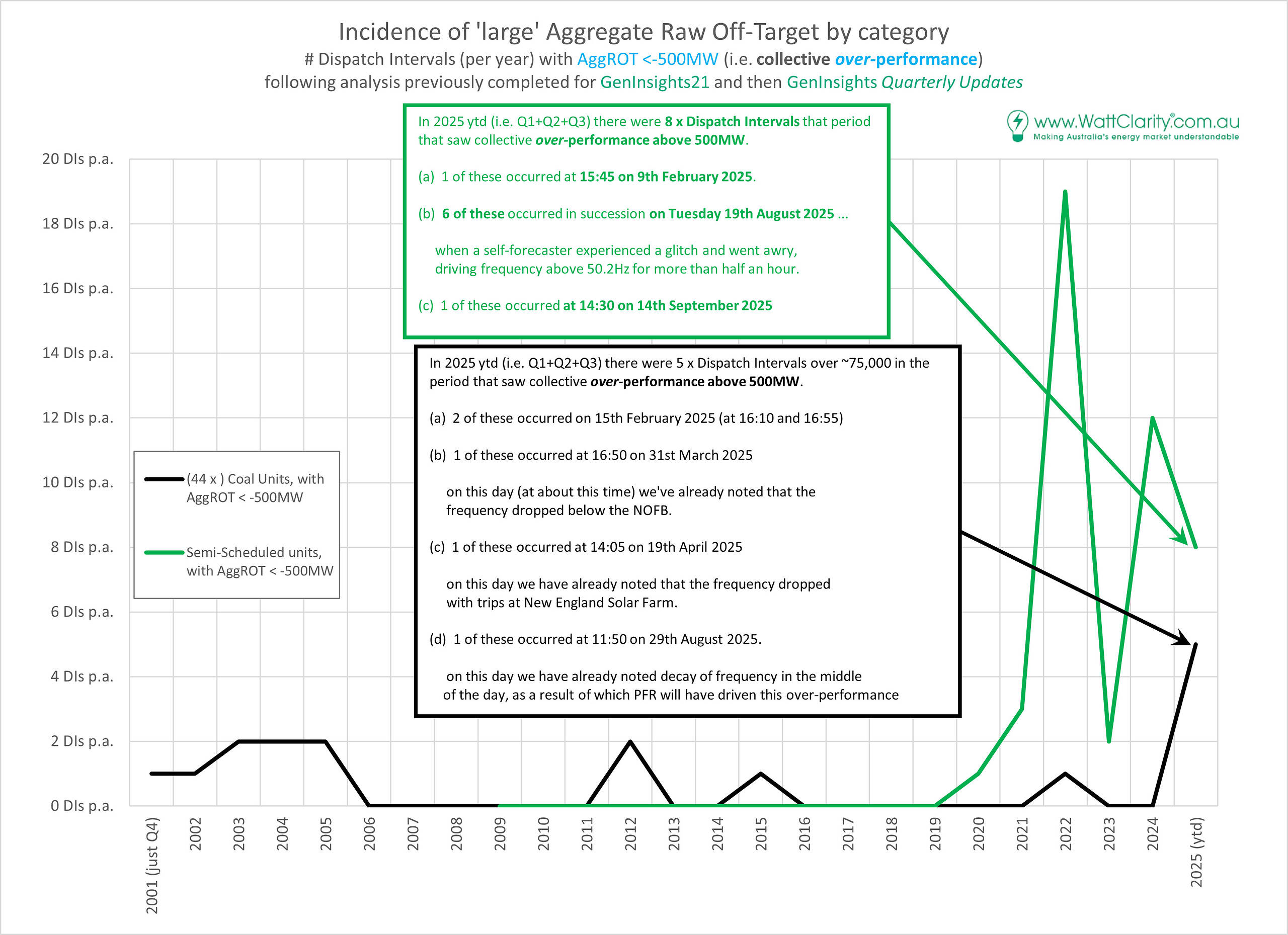2)  Whereas for the the Semi-Scheduled category, the collective under-performance instances seems to occur when many units together under-perform, but also when there’s not an equal-and-opposite response from other Semi-Scheduled units (despite the promises of diversity) to compensate.