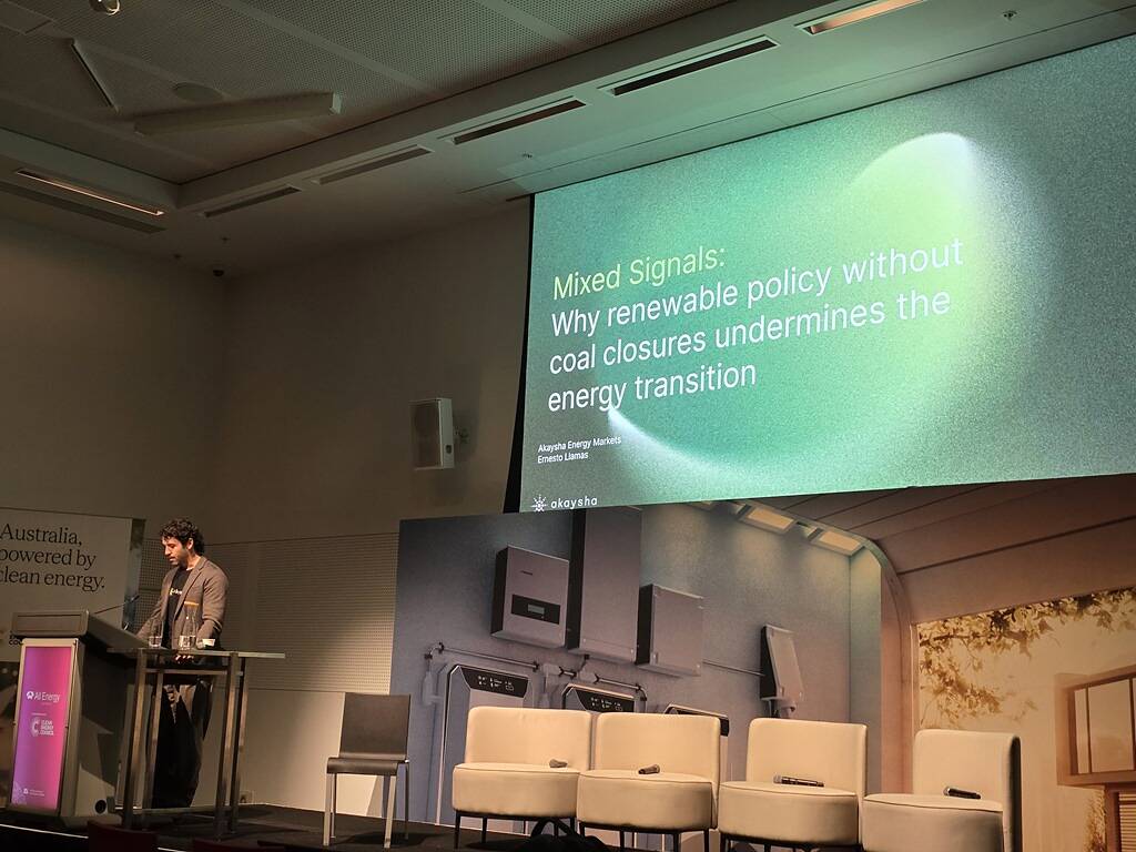 Ernesto built on some of the context provided by Tristan in speaking about ‘Mixed Signals – Why renewable policy without coal closures undermines the energy transition’. … and presented some of his results from Plexos modelling, including this slide that points to more doubts about actually achieving 82% by 2030: |