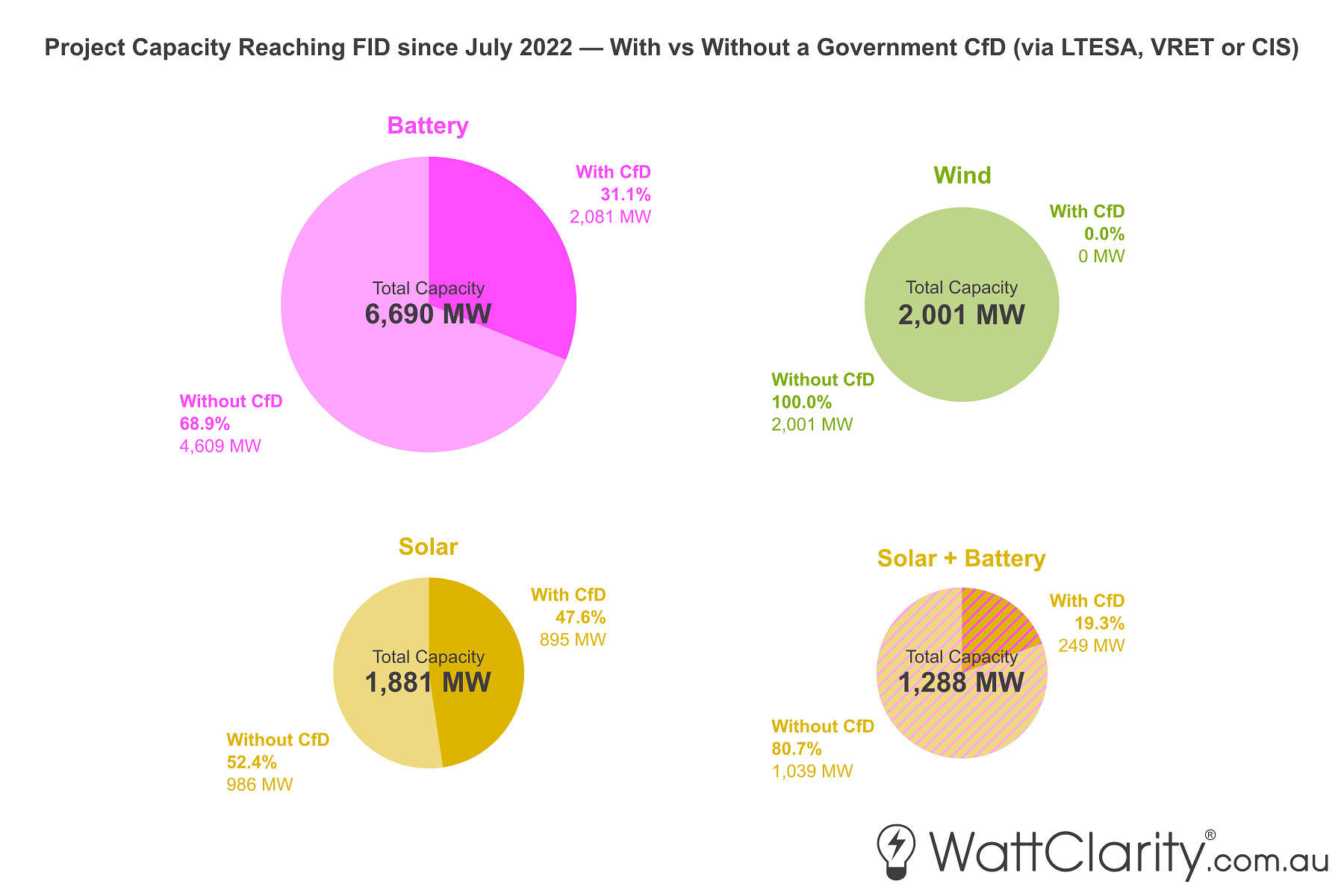 Since July 2022, about one-third of all battery capacity reaching FID has been tied to a government CfD.
