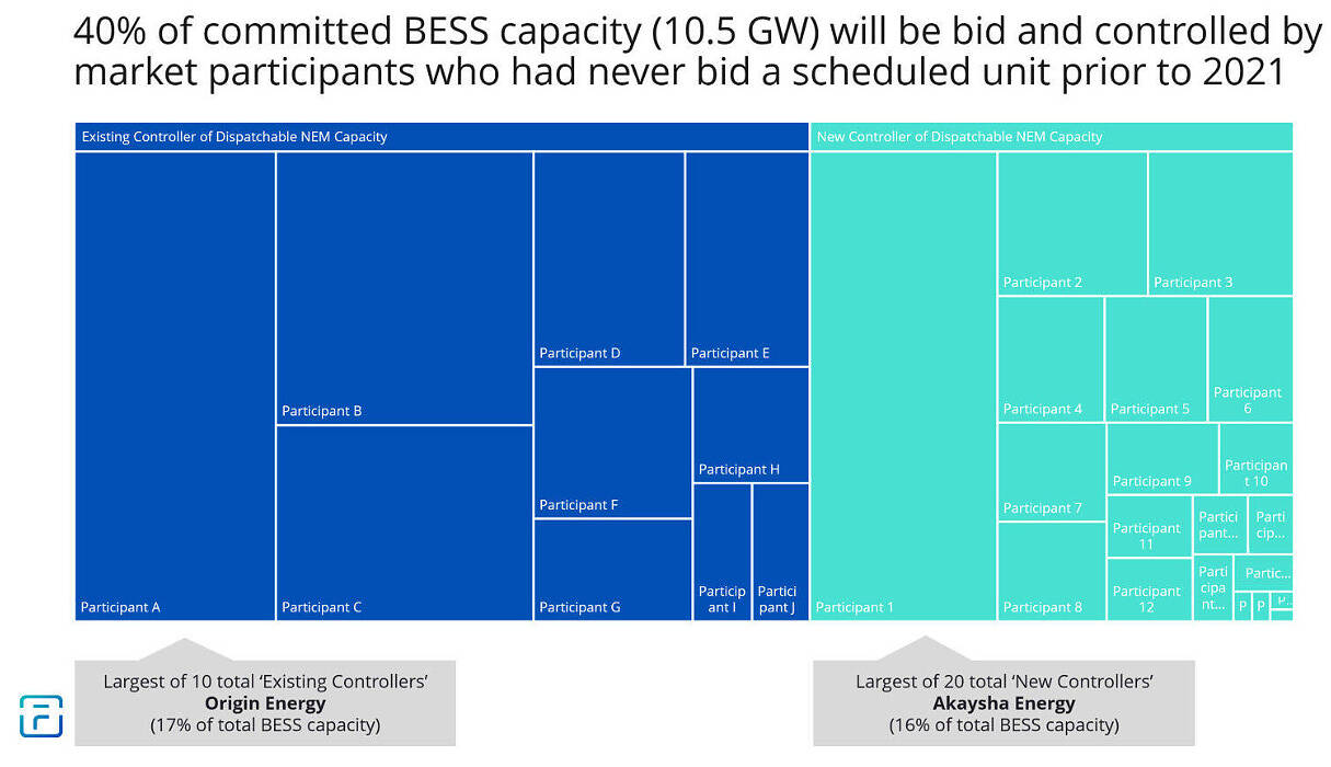 - The BESS owners don’t have the same profit maximising objectives. Related to the above, while each battery owner may be using algorithms and software to support operation of the BESS, each BESS is going to have a different operational strategy. Those owned by gentailers form part of a larger portfolio of assets managing an overall position gentailing. Other batteries are set up under long-term offtakes which may have it’s own operational constraints or directives, while others are providing network services etc. The end result is bidding strategies that aren’t directly aligned in terms of how they profit maximise, which makes it more difficult to align strategy.