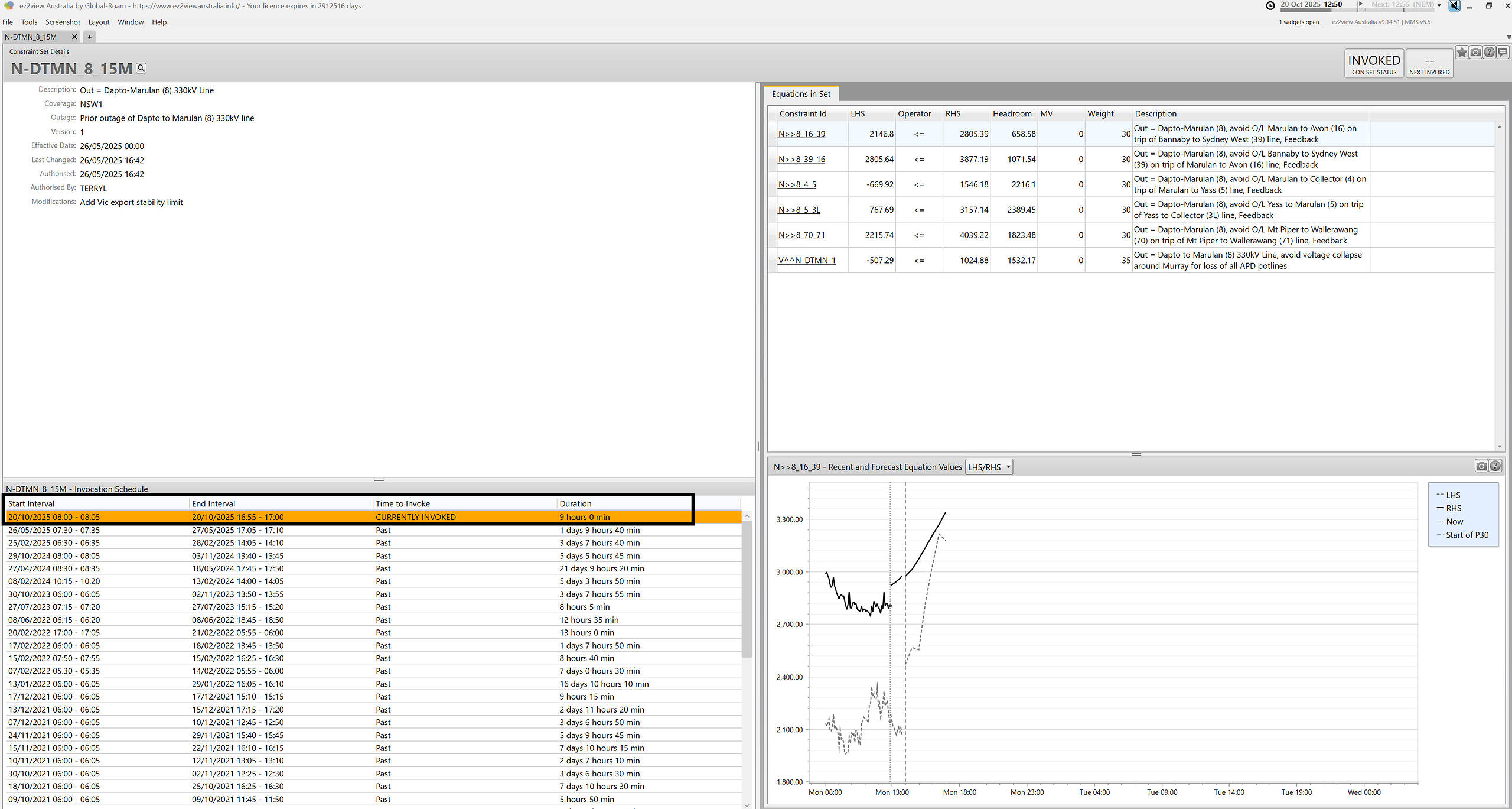 The following constraint set(s) invoked at 0800 hrs 20/10/2025