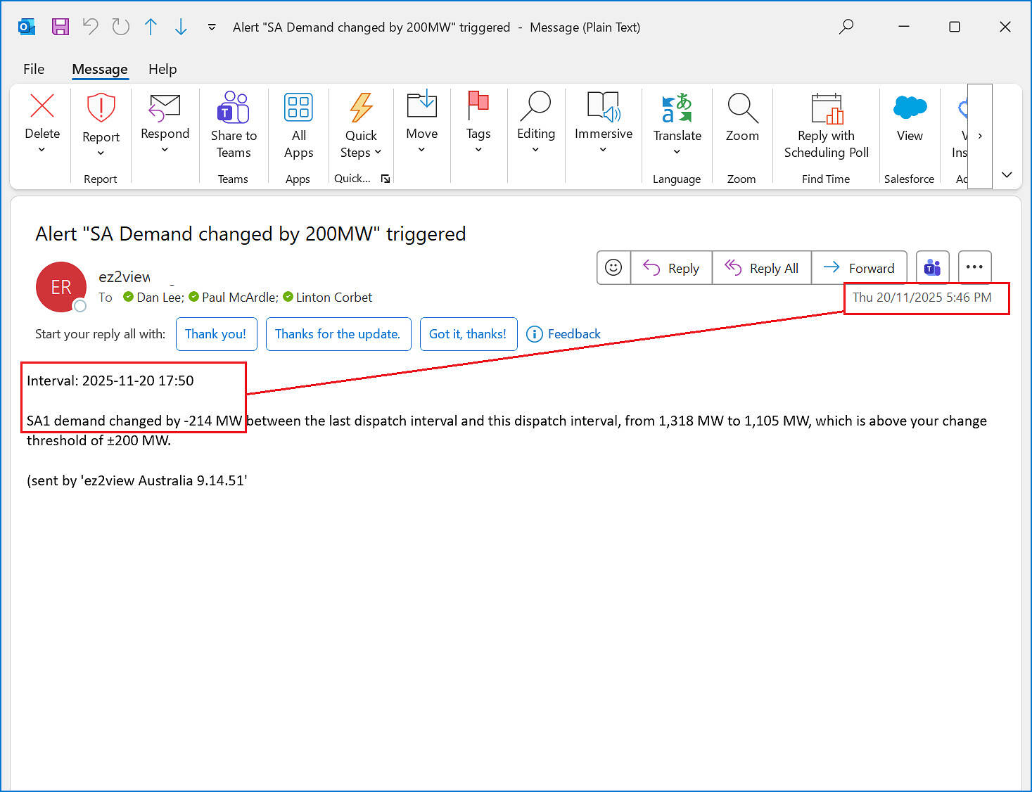This was captured in our ‘Notifications’ widget within ez2view as it happened. For more context of what’s been happening in South Australia, here’s a NEMwatch snapshot: