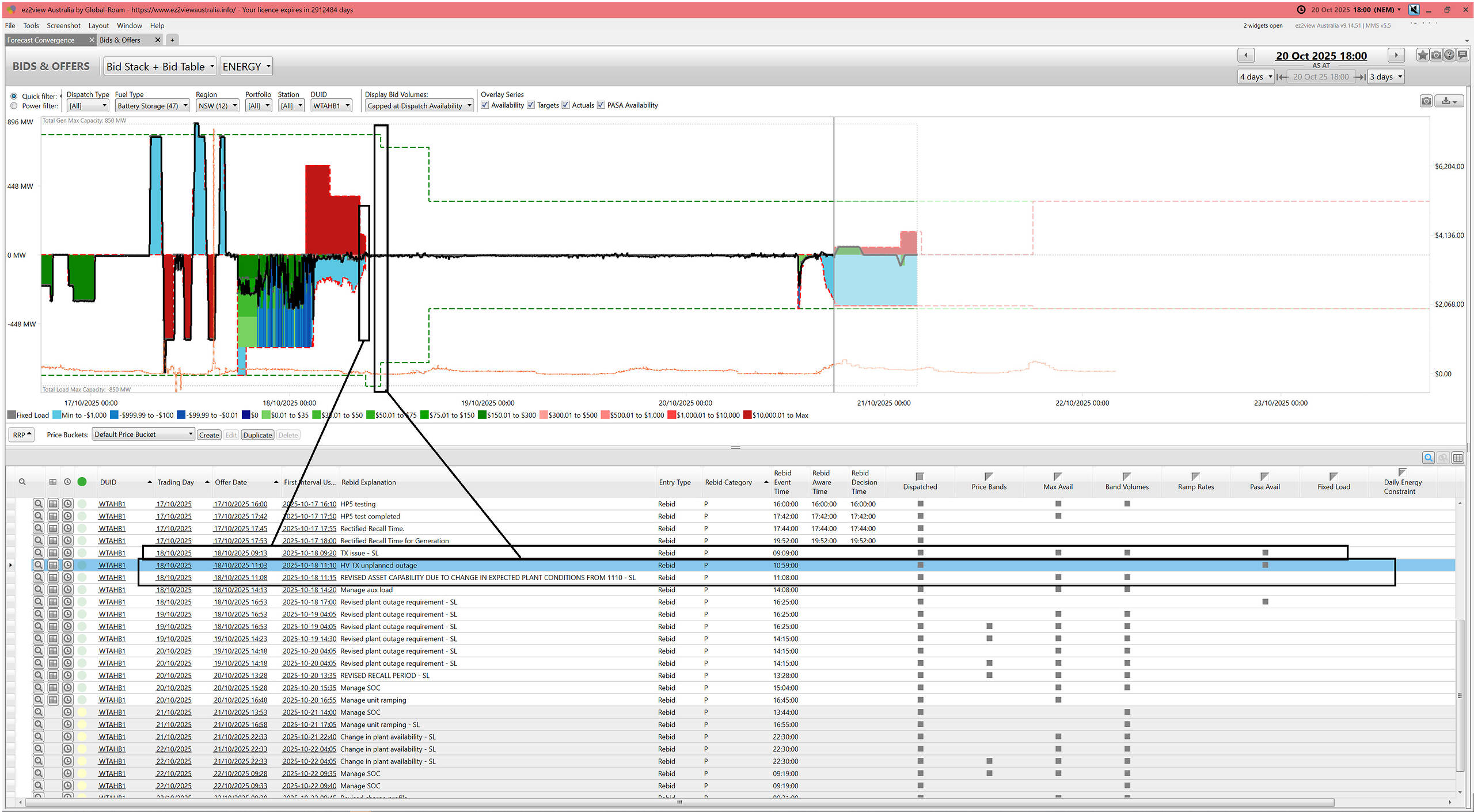 1) On Saturday 8th November I’d posted this ‘… quick look at (plant-related) rebids for Waratah BESS to 19th October 2025 (during Hold Point 5 testing for full discharge)’ but, in that article, did not see any rebid reasons that particularly jumped out to me as particularly alarming: