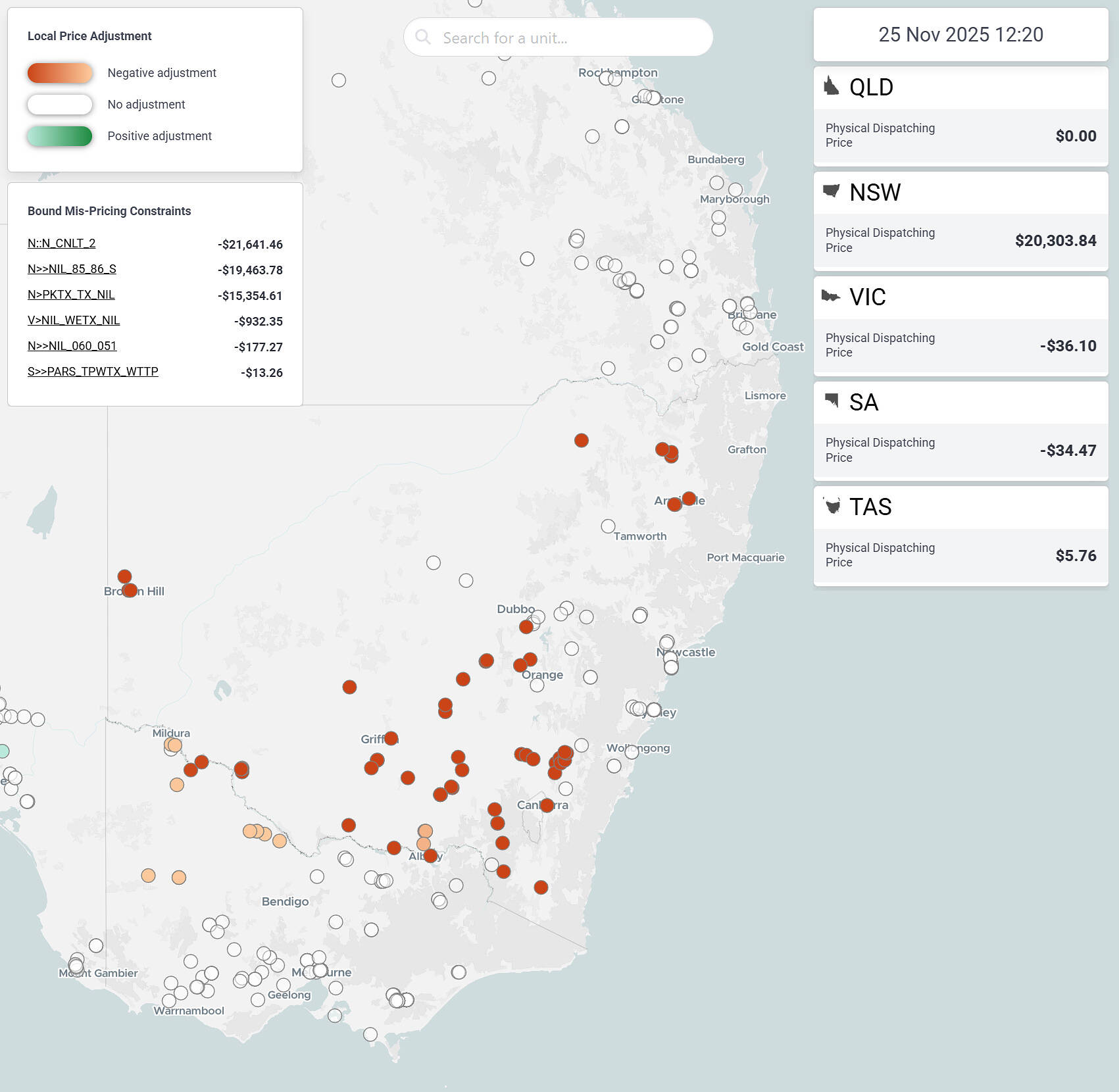 Source: ez2view’s NEM Map Widget. Screenshot taken at 12:20pm NEM time.