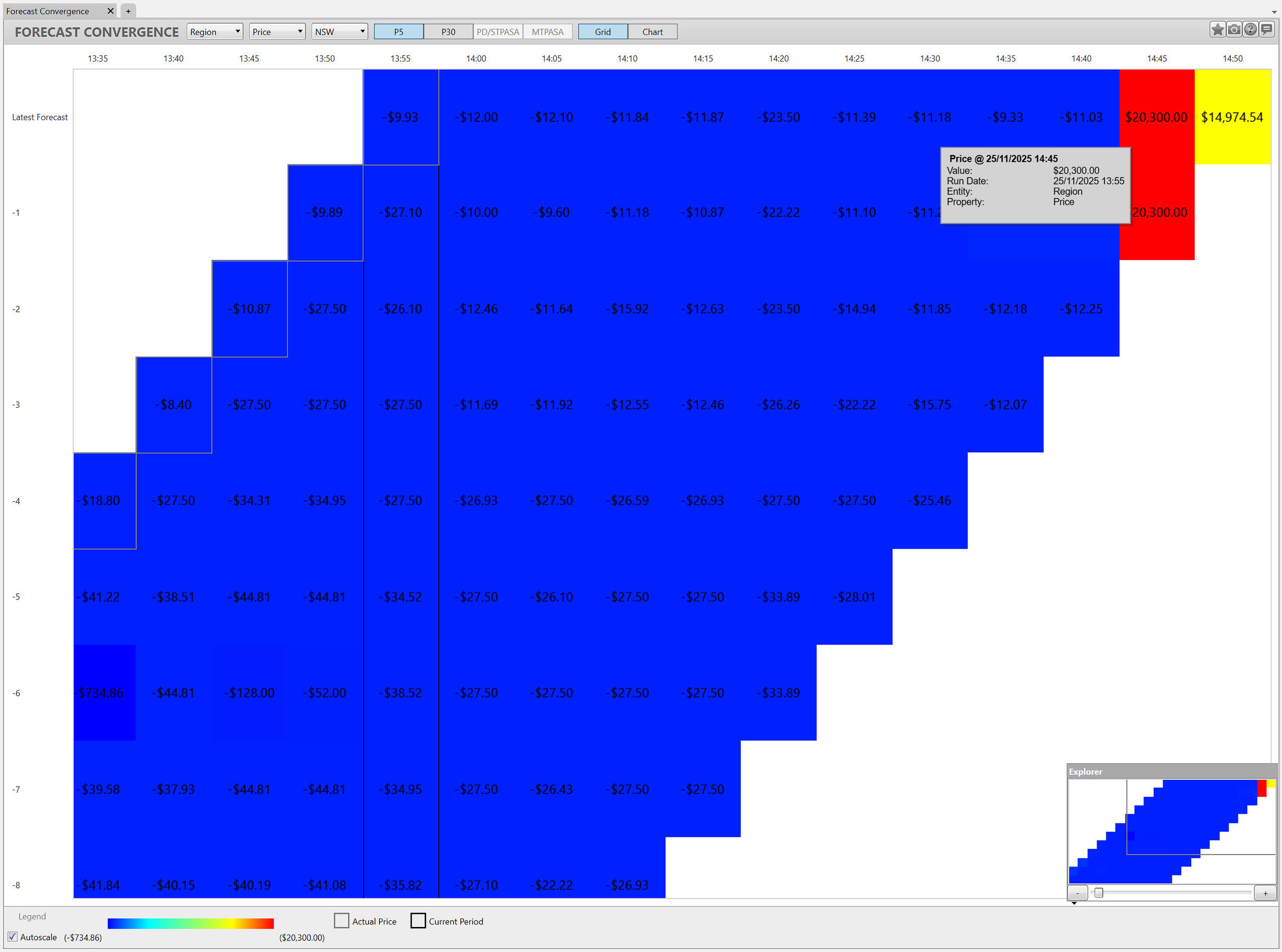 Our forecast convergence widget shows that the AEMO’s P5 pre-dispatch model is currently projecting high prices again later this afternoon.