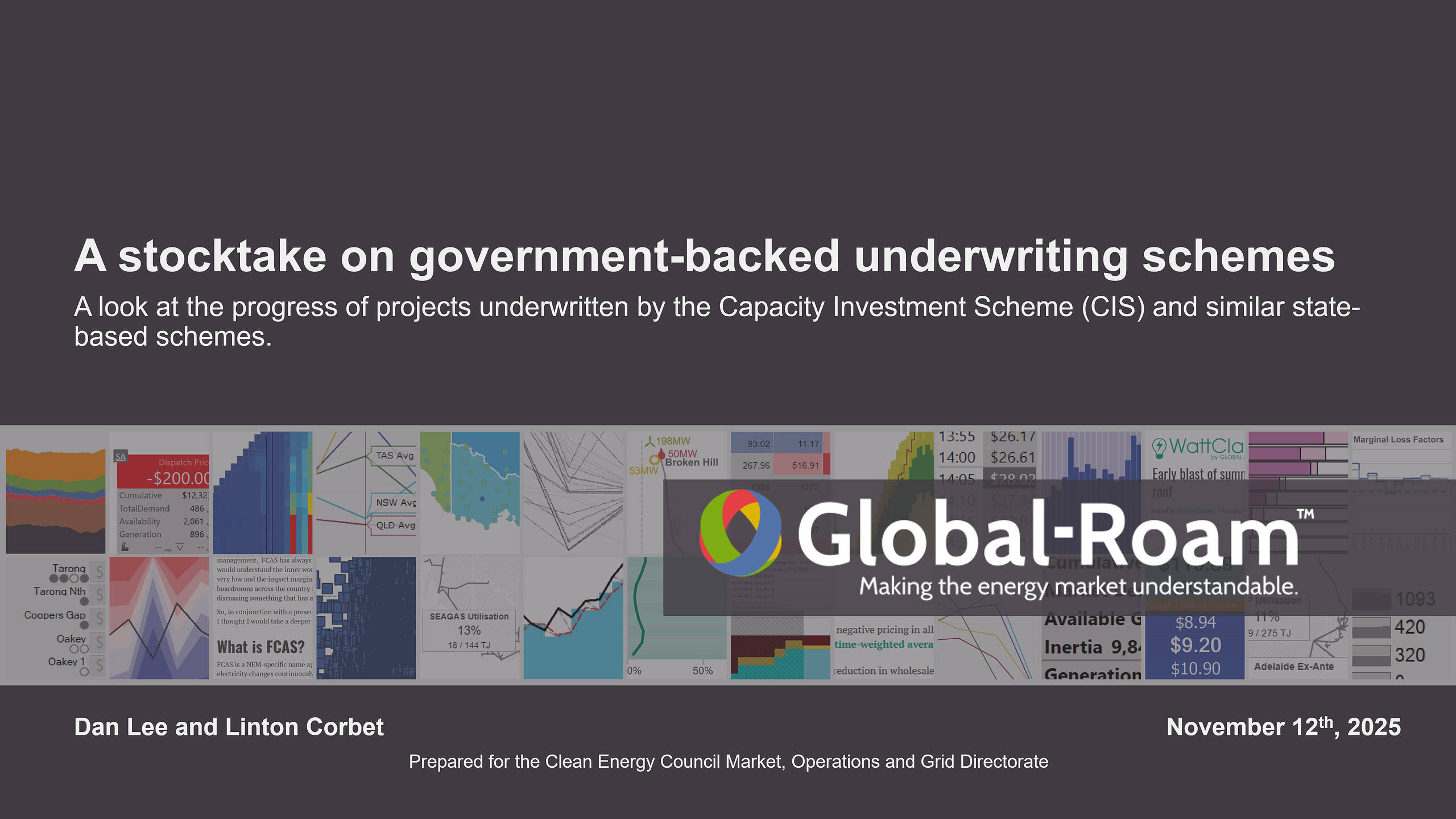 On Wednesday afternoon, Linton and I presented to the Clean Energy Council’s Market, Operations and Grid Directorate about the Capacity Investment Scheme (CIS). It was a pleasure to be invited back to speak with that group, and we thank Veronika Nemes, Diane Staats, and the CEC for the opportunity.