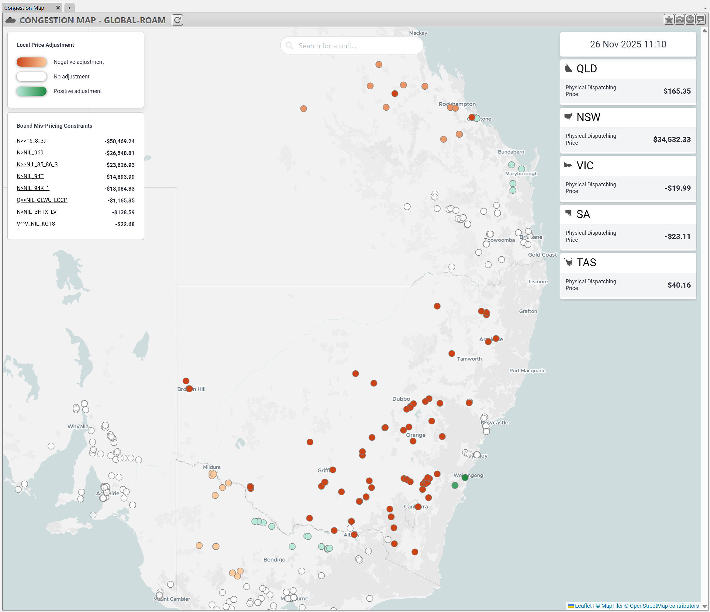 Source: ez2view’s Congestion Map Widget. Screenshot taken at 11:10pm NEM time.