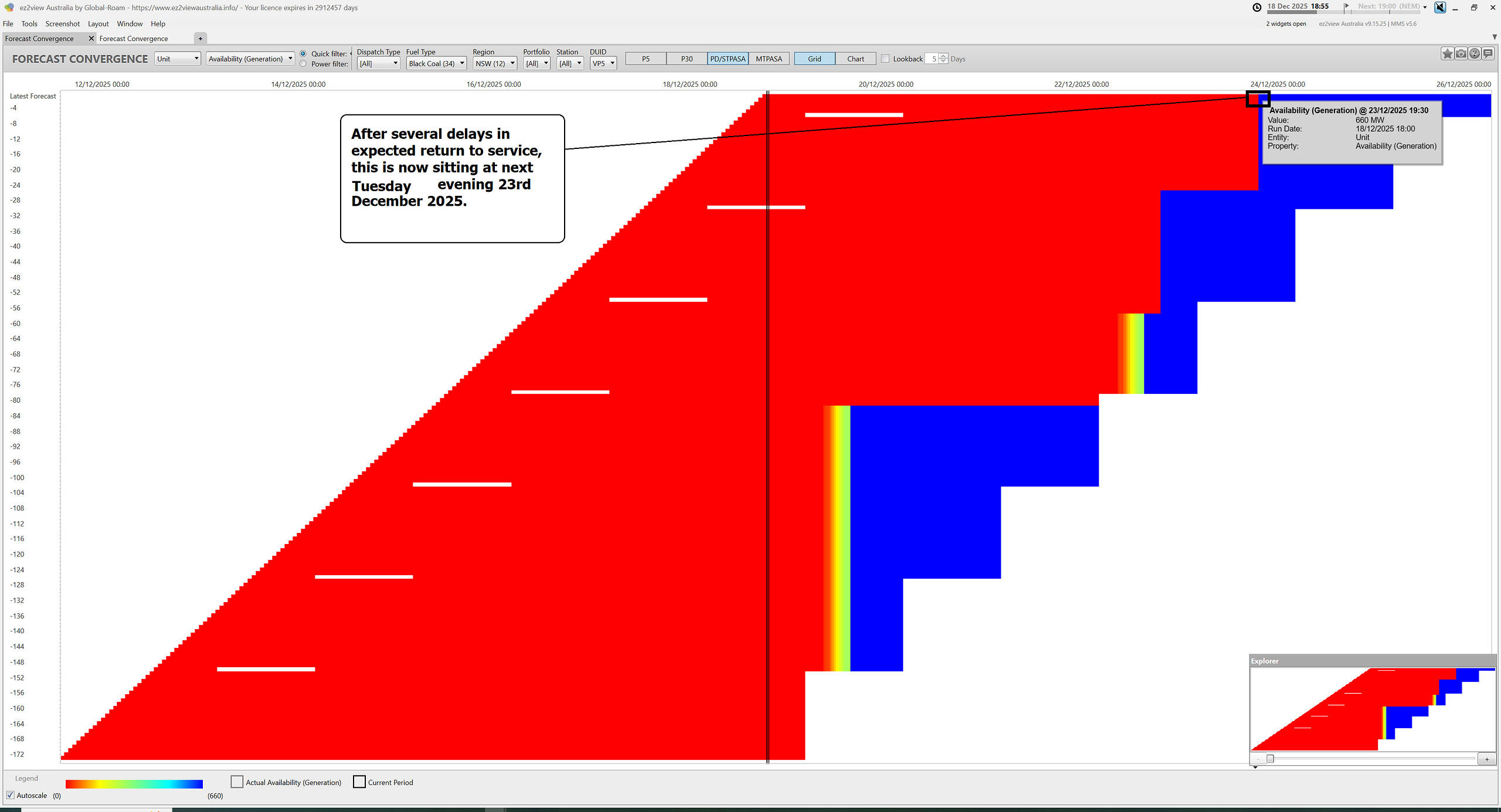 Then flipping to the more granular ST PASA data, we see the expected return to service is now sitting at next Tuesday evening 23rd December 2025: