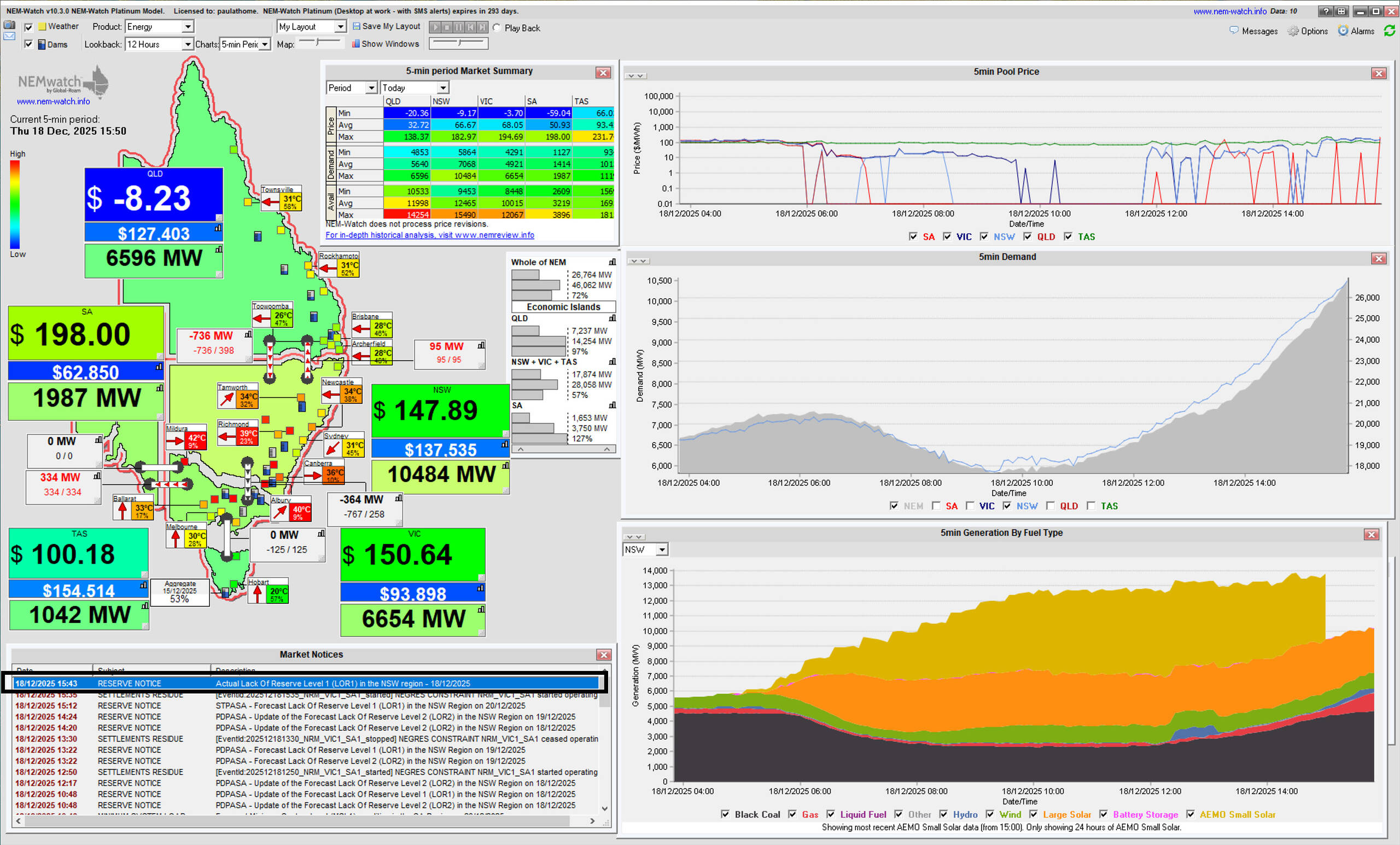 ‘Actual LOR1’ in NSW from 15:43 on Thursday 18th December 2025