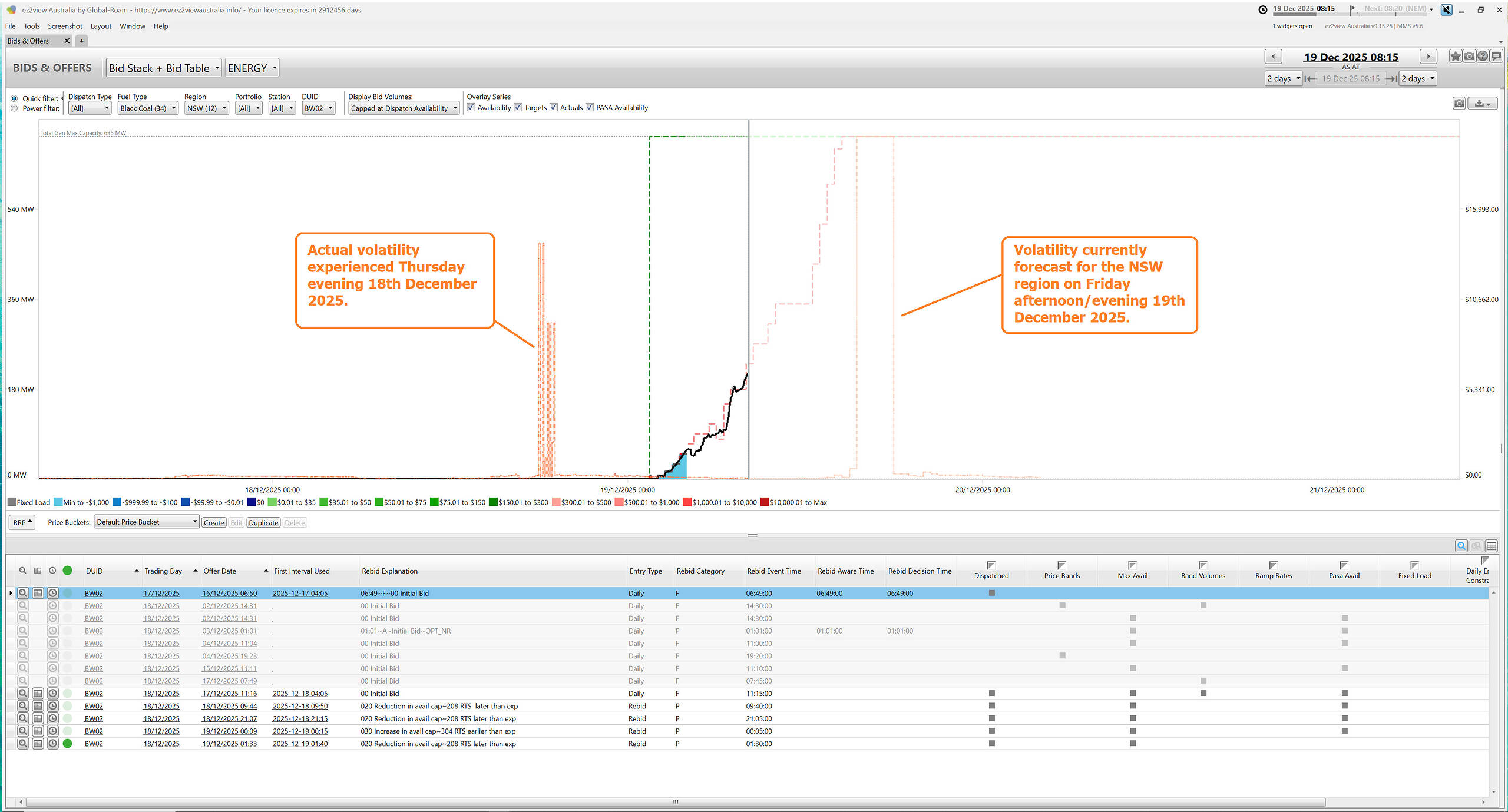 Worth a short note with this snapshot from the ‘Bids & Offers’ widget in ez2view to highlight that Bayswater unit 2 is in the process of returning to service on Friday morning 19th December 2025: