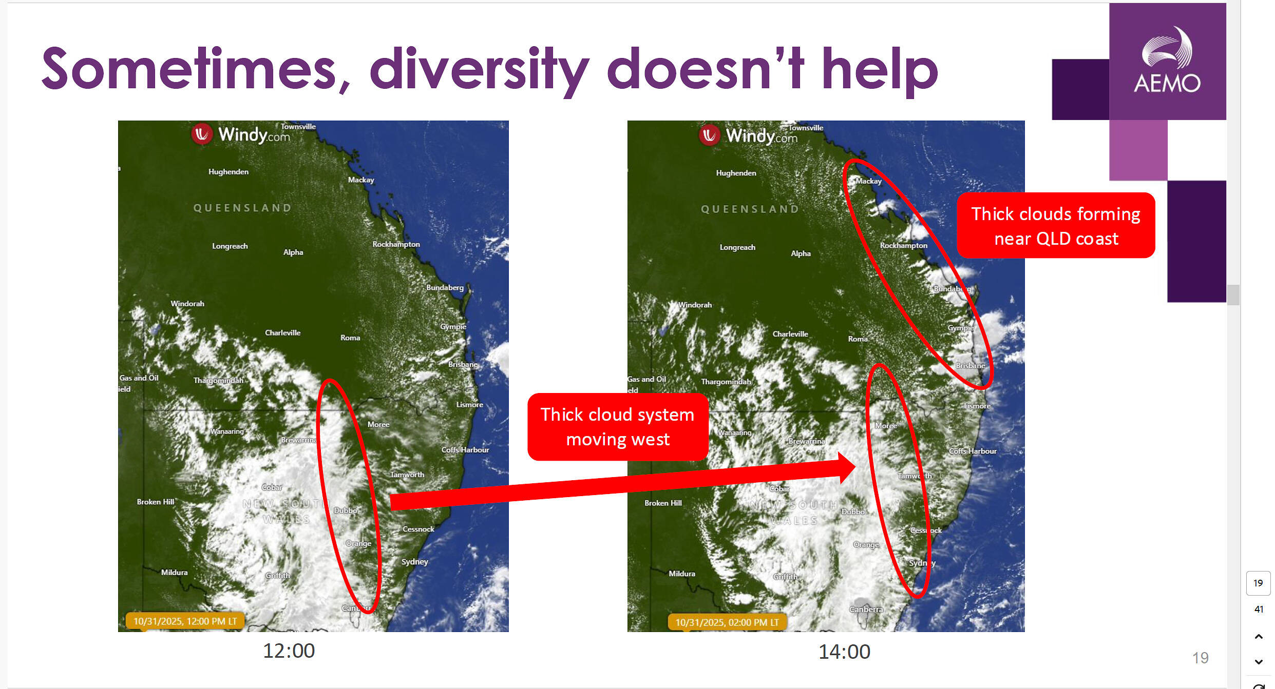 2) While in Queensland the error was due to clouds forming ‘out of the blue’, which is difficult to predict.