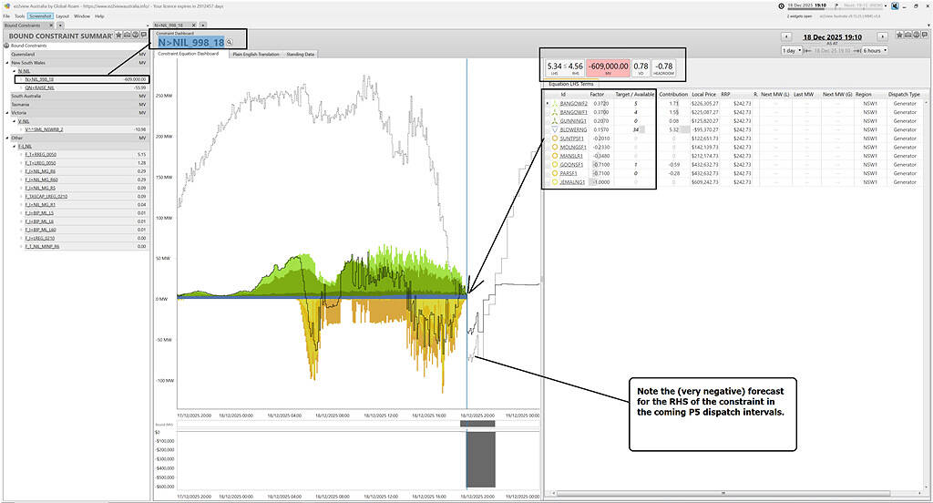 Another short note as Thursday afternoon 18th December 2025 advances, to flag the forecast violation of 3 different constraint equations in NSW this evening.